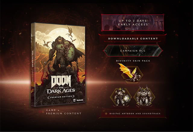 *For a limited time, get the Premium Edition of DOOM: The Dark Ages (a $99.99 value) with the purchase of a qualifying NVIDIA GeForce RTX™ 5090, 5080, 5070 Ti, 5070 desktop system or graphics card, or laptop with a GeForce RTX™ 5090 Laptop GPU, RTX 5080 Laptop GPU, RTX 5070 Ti Laptop GPU, RTX 5070 Laptop GPU. Technology varies by GPU }